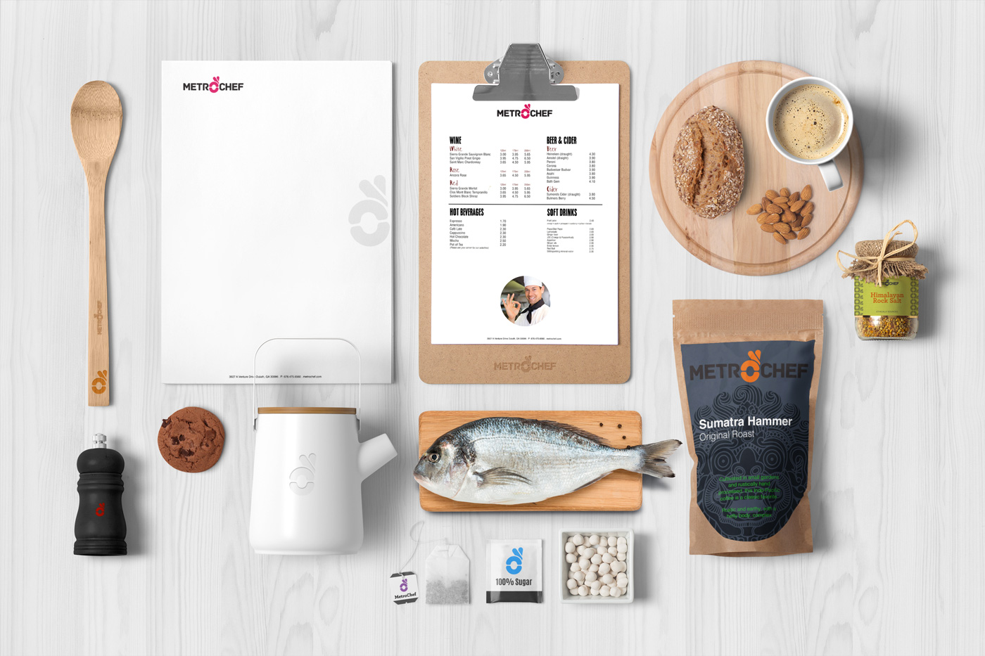 Metro Chef Supermarket: Logo, Stationery, Poster, Sales and Marketing Brochure, Street Banner, Packaging